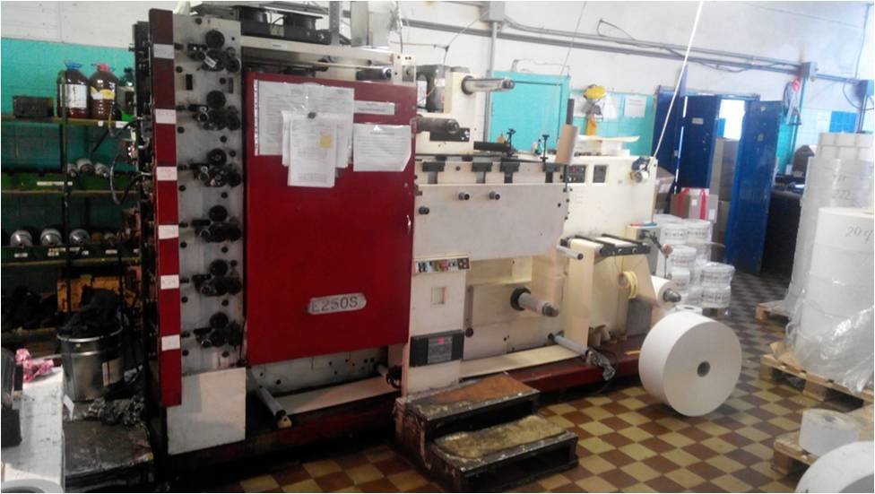 - In production since 2003. Flexographic printing press with closed ink system with doctor knife. Speed up to 100m/min depending on the type of artwork. Water based inks. Dimensions 4,2m lenght 1,3m width, height 2,1m (not including attachments) . Edge control system. Material tension control system (unwinding/rewinding).Infra-red electrical dryers (6 decks).Die cut unit.Mounting table + pneumatic clamps.Drive section - gear (2,5 mm interval).Manual colour register control of the printing decks.Video control .Accessory:Plate rollers: 3 sets.Anilox rolls: 9 rolls.Magnetic cylinder: 2 pcs (11;12 inches) .