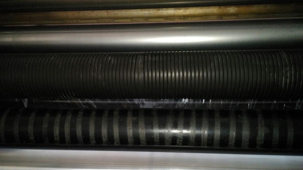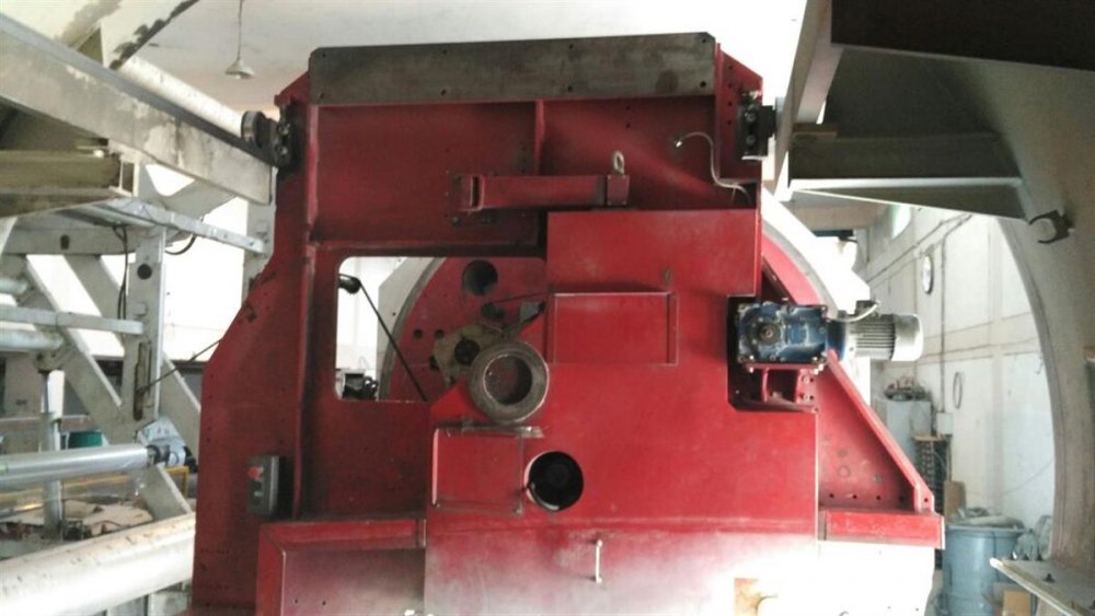 | Note | Output : 20 tons per day ( calculated for 12 mic Polyester Film in maximum width ). Min. metallization width 1200mm . Core ID 152mm . Diam of ALU wire 1.6mm. Unwinding tension range /tension capstan unit : 3.5 to 65 Kg / 90 Kg . Diameter of process roller : 500 mm . Additional Cooling System Corema Chilling unit for main process drum ( -20 C) . Max. Absorbed power (approx..) 340 KW . Number of chambers: 3 independent vacuum chambers with independent pumping systems to increase the efficiency of the vacuum. Optical control RF: Controls during metallization process the thickness of aluminium coating through photometric non---contact sensors. The system also controls automatically (via step motor) the deposit of aluminium and the feeding of the wire. Rewinding Unit: Digitally control to ensure an accurate rewinding tension control, via the following five DC motors: Unwinding,Rewinding, process roller (main drive), 2 capstan rollers. Two ceramic plated rollers, 2 bowed spreader rollers, oscillating arm on the rewinder with tension sensing control system. Handling of the rolls: The machine includes a hydraulically driven robotic handling system, manufactured by ICAP Group, for the loading of the jumbo roll, and unloading of the finished rolls. This same system also inserts and extracts the air expanding shafts during the loading and unloading procedure .3 air Shafts are included in the supply . Special Robotic System for Loading & Unloading of rolls. |