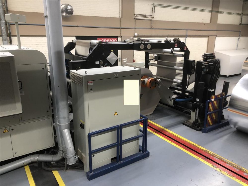 | Note | Double Unwind Board/paper material Max Diameter Reel in 1800 (mm) Core size 300 (mm) standard or 150 (mm) Web guidE FIfe Breaker installation with automatic adjustable setting Slittingm achine direction (sides-mid) – 3 knives Tidland Cotta Rotary knive system - Dust removal system (vacuum clean), anti static bar Cutting transversal: - Twin rotary cutting system - Dust removal system (vacuum clean), anti static bar Pallettizing - maximum height 1650 (mm) Speed: 250/min |