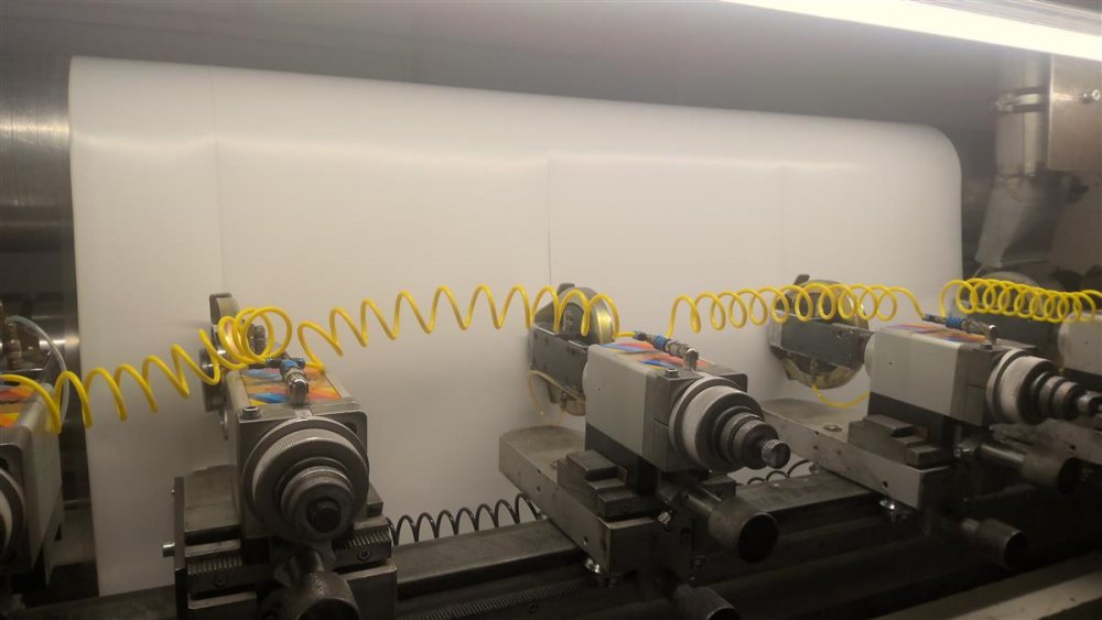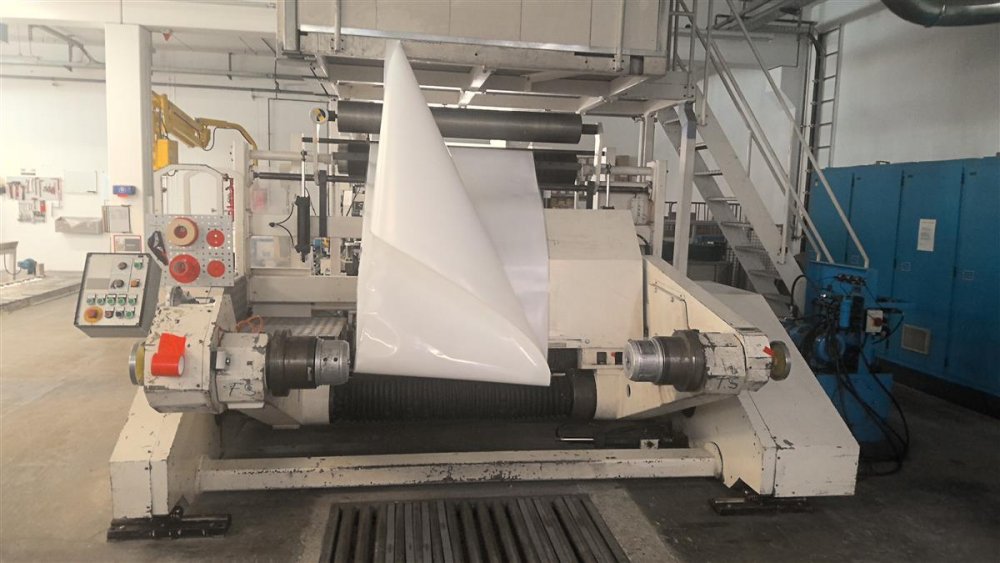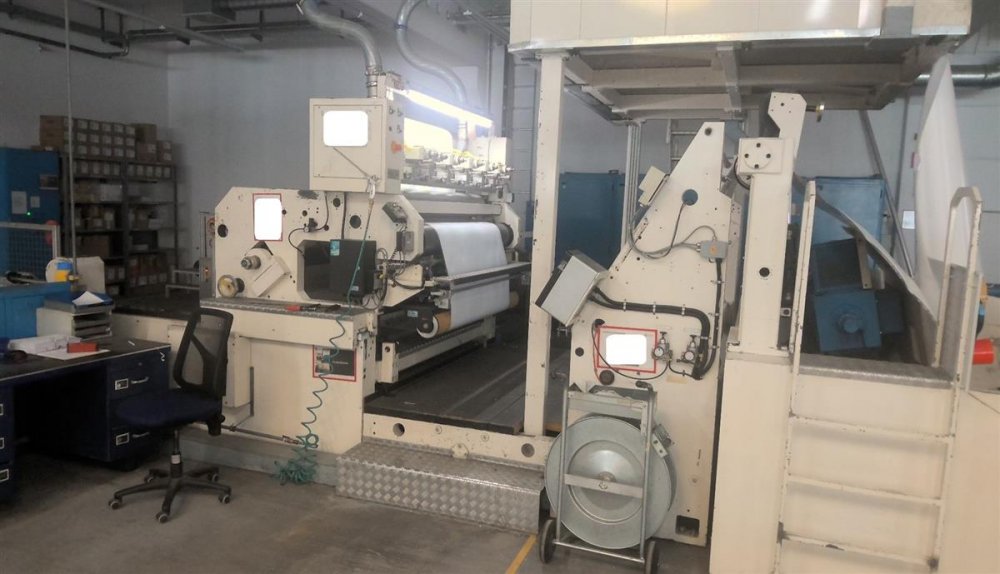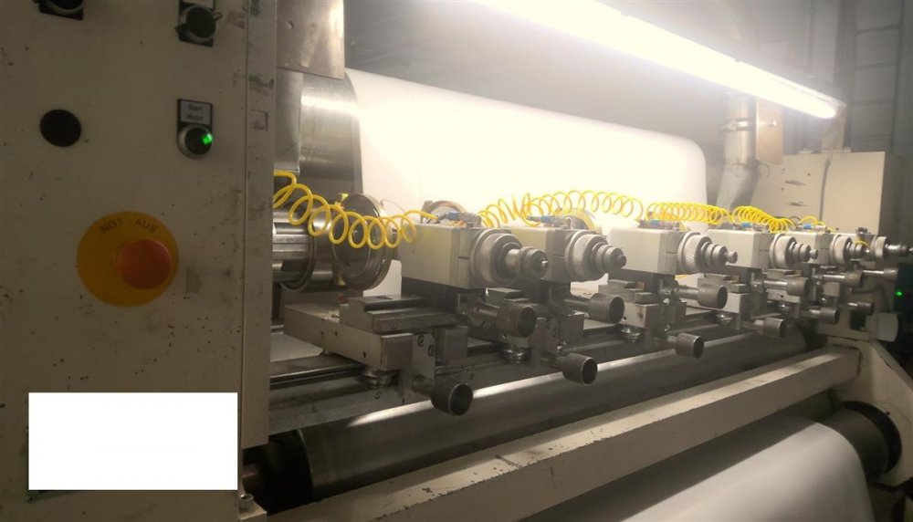 | Note | Dimensions 8500 x 2500 x 7200mm Electrical supply30 kw/400V S-DRIVE main drive system Slitting section: -- maxim number of slits: 6 Unwinder : - max reel weight : 1200kg -core material : plastic/ cardboard -separate arm movement -cores 200mm -hydraulic reel pick up -minm reel pick up height from the floor leverl 200mm - no splice table - driven motor tension control - edge controlled (pneumatic) web guide type - idle rollers anodised aluminium Rewinder : -cores 76 & 152mm |
