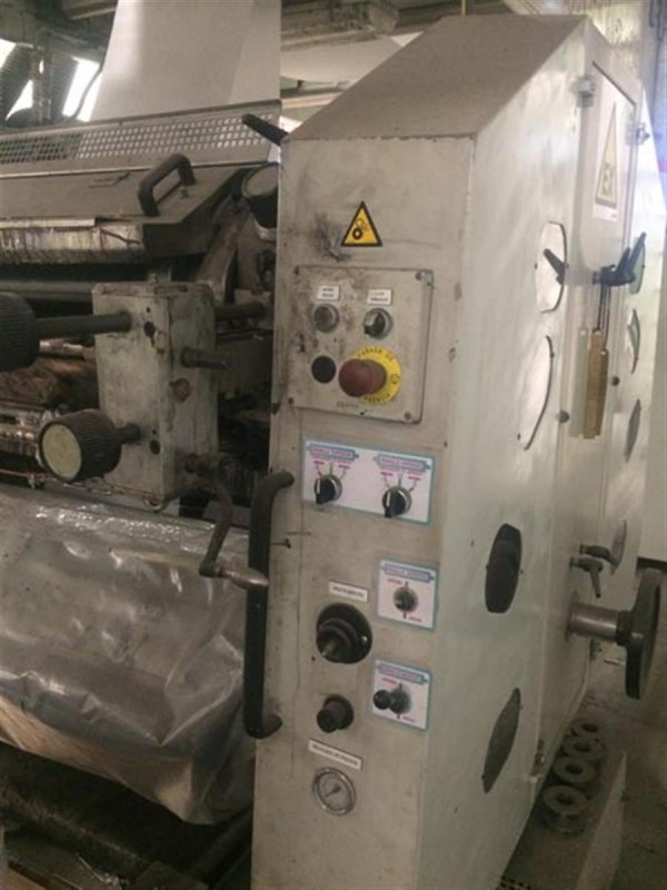 | Note | Useful width 1000 mm/m • Max diameter of paper coil 1200 mm/M • Paper weight of 30 to 120 gr/m² Flexographic printer model F100 • Drying system with gas burner and individual screens for 3 colors. • Electronic servo driven |