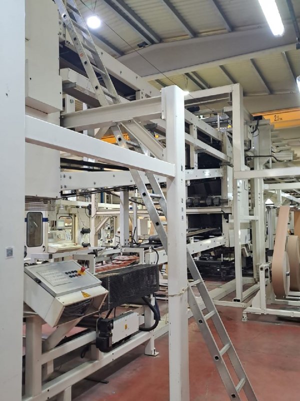 | Note | Tuber: -3 unviwnders- each with a max diameter of 1400 mm -Perforating unit -Printing unit with 4 colors, Web width: 1450 mm, Print Width: 1350 mm, Print repeat: from 550 mm -Cross pasting unit for up to 3 plies -Digital lengthwise injectors for 3 plies Transystem Bottomer: -Automatic rotary feeder -Bottomer patch unit each side -Double valve unit Palletizer |