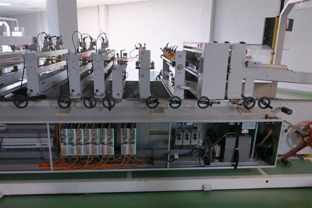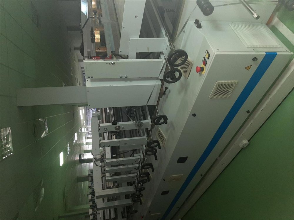 | Note | Installed power 50 Kw, 400V 50Hz 12 m x 1.5 m x 2.3 m (L x W x H) 4 Euro hole, 4 tear notch, 5 round corner punches Dancer at unwinding + 2 edge ultrasonic guides Folding unit 3 longitudinal sealing bars 600mm+600mm cooling 4 cross sealing bars 2 cross cooling bars 1 trim winder Cross cutting by sevodriven Guillotine on rails Nr. 1 Industrial-PC with VGA graphic monitor and touch screen 12" (800 x 600 pixel) |