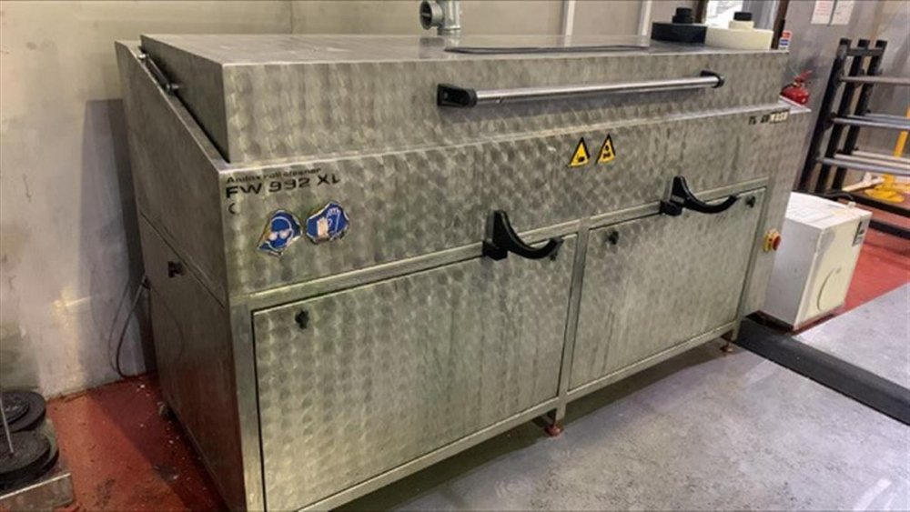 | Note | ANILOX SLEEVES CLEANING ,MACHINE 2 anilox sleeves cleaning at same time Maximum size of the anilox sleeves Ø 180 mm and max length is 1850 mm ( including the adaptors , so in fact max length is about 1550 mm. The unit is controlled by microprocessor and the operator can change settings as washing time, rotation speed and temperature. 1 filter 50 miicrons for the ink particles 1 diaphragm pump for spraying cleaning liquid and 1 high-pressure pump for high-pressur rinse water. |