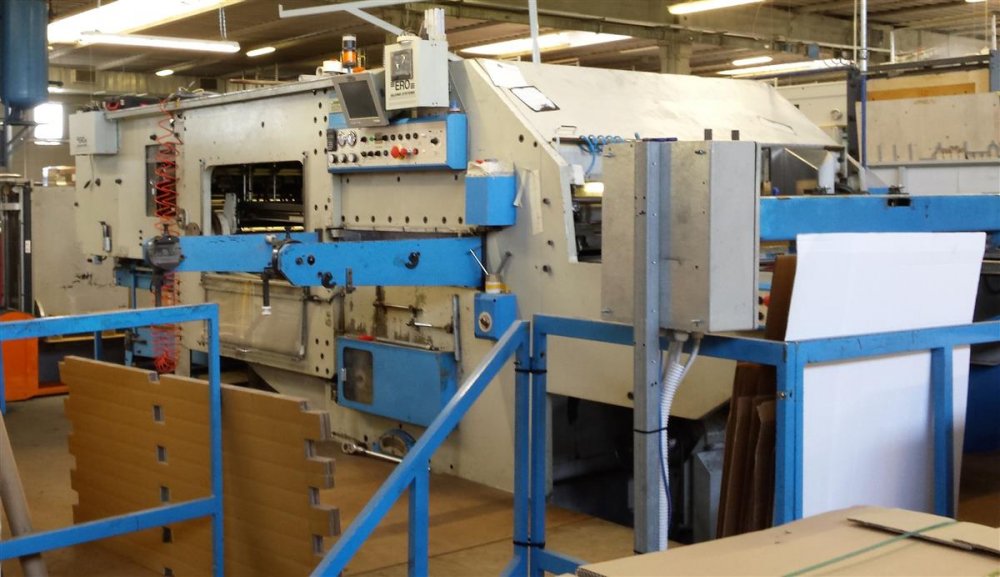 | Note | year 2000, perfect condition, official assitence by TMZ Spain,. Available March 2017, possible vision in production. Max size 1100mm x 1710mm Min size 500mm x 560mm Weight Max 1450gr\mq Weight Min 380gr\mq Speed 6000 sheeets\h Tonn 380. Thickness Max 8 mm Thickness Min 1 mm introduction with vacuum from bellow. Centerline 1 and 2 station. height 2550mm length 7170 mm width 4500mm weight 35 Ton included roller conveyors , Lift ,and ERO system for gluing inside the box |