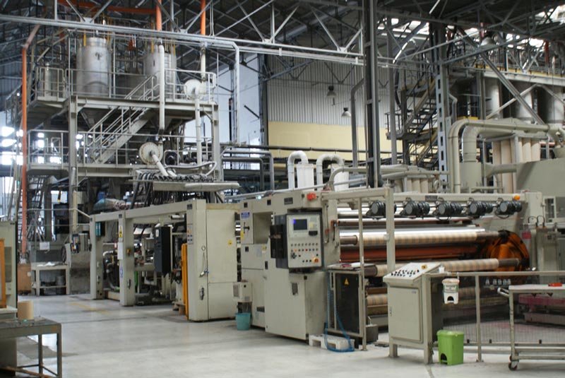 The plant included 3 cast film lines 3 layer 3m wide, 1 cast film line 5 layer 1,4m wide, 2 polishing stack/calender lines 5 and 7 layer and 3 slitting, rewinding machines. All extrusion lines were manufactured by Reifenhauser.