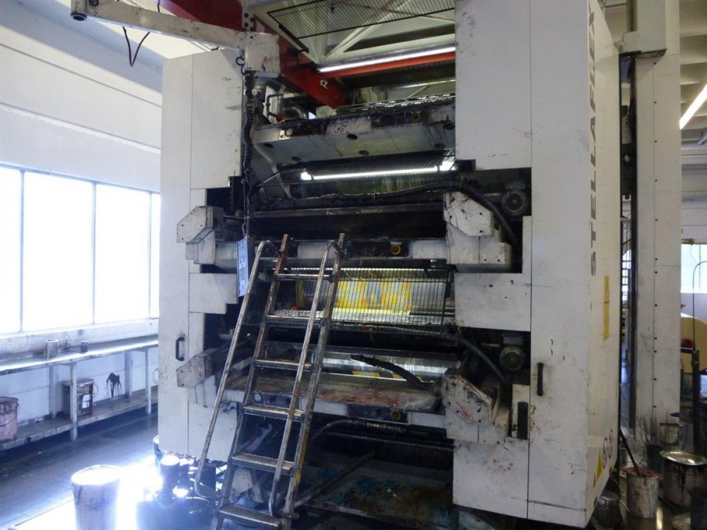 | Note | Mechanical speed 300m/min. Gear pitch 10mm Material: plastic film 12-200my Cliche thickness 1,14/2,84 4 airshafts 3" Hot water heating type Inline slitting with 1 knive Portalift system for automatic cylinder's loading. 48 gears cylinders Spare parts : 2 doctor blade chamber; 4 color trays; 3 color pot Dimensions of printer 19,5mx7m Air mandrels: 8x300,9x370,8x420,7x440,9x460,9x500,5x530;2x570;6x660;6x650;16x950mm |