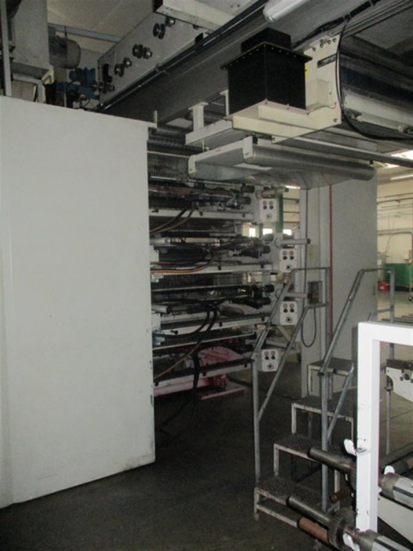 | Note | 10 mm gear pitch motorized longitudinal /side register Speed 300 m/min Materials : LDPE, PP, OPP Unwinder : marriage roll, dancing roller, tension control, pneuamtic shaft 3" and 6" Rewinder : pneuamtic shaft 3" and 6" Sleeve machine for anilox and cylinders plates, slow rotation with electrical motors; through off system, meshing system Sets of gears Conditionig system for the central drum |