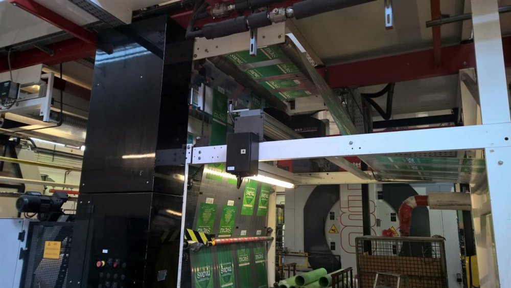 | Note | Small format gears from 400 to 599: 16 pcs. Large format gears from 600 to 1.200: 16 pcs Cylinders Trolleys for handling and job change: 7 Automatic cylinder handling system Portalift Motors and operator interface touch screen upgrades in 2015. Upgrade of the machine controllers interface made in 2015, including the replacement of all drivers for the anilox motors. Slitter unit with trim aspirations at the rewinder. |