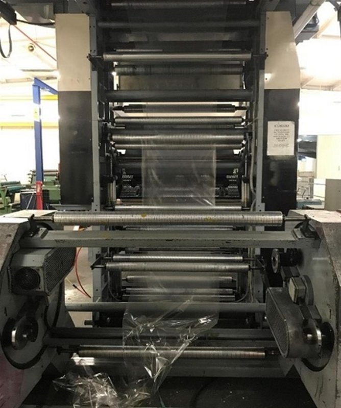 | Note | Substrates able to process:Plastic films Maximum speed :200 m./min. Bull-gear, pitch 5 mm. Edge guide systems:1 before printing and 1 before rewinding Length registers :Motorized remote controlled. Side registers:Manual. Decks’ positioning system:Automatic. Locking system of the printing units:Automatic. |