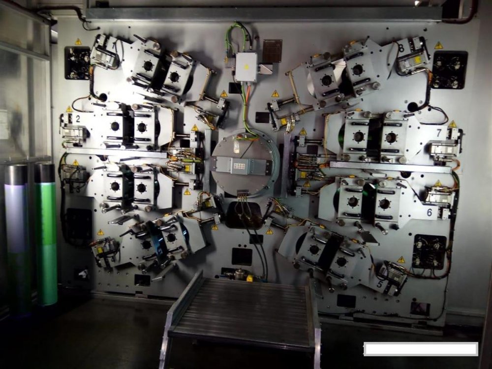 | Note | Hastalloy plasma coated drum Gearless direct drive system Automatic print final setting PRESCO ACONPRO Uninterrupted power supply unit ( UPS ) Temperature control unit complete with One water chiller of 18.500 frig/h. (21 KW) capacity. Capacity suitable for chill rollers, as well as for the CI drum temperature stabiliser. |
