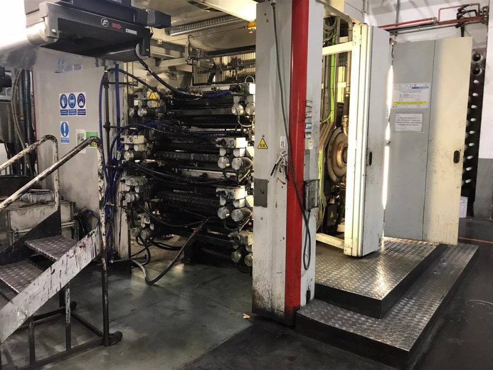 | Anilox | 26 ceramic anilox sleeves as follows : 2x 80 l/cm-vol.14 ; 2x 120 l/cm-vol.11; 1x 140 l/cm-vol.9 ; 2x 160 l/cm-vol.8,5 ; 2x 200 l/cm-vol.7,5 ; 6x 320 l/cm-vol.4,1; 1x 320 l/cm-vol.4,9 ; 8x 420 l/cm-vol.3,7 ; |