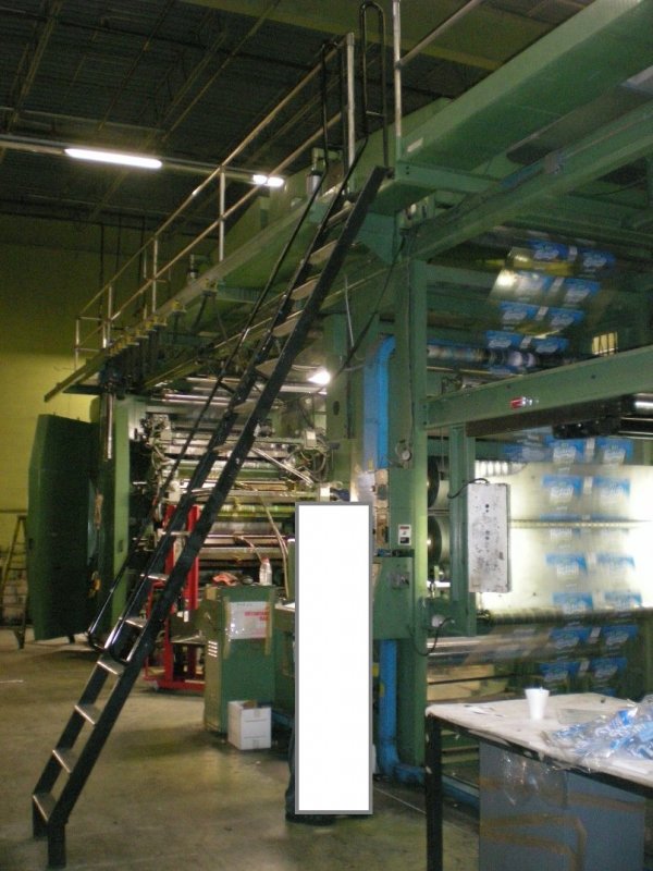 | Note | Material: LDPE Total plate thickness: 3,25 mm (stickyback included) Mechanical speed: 250 /min 8 electric pumps with tanks, 8 ink trays, 8 new doctor chambers and blade system of last generation. Unwind and rewind rebuilt in 2008, new gears, hydraulics, new main motor. |