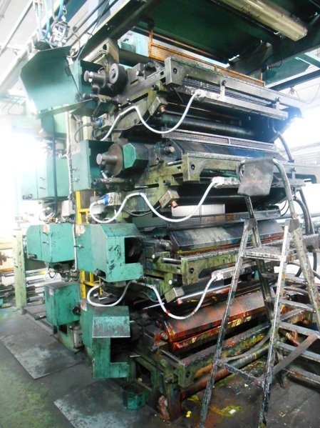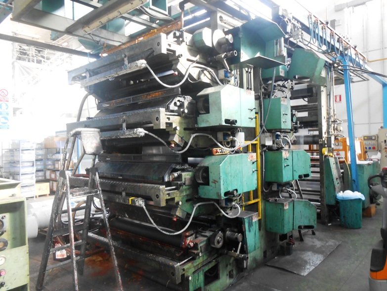 | Note | Manual longitudinal/trasversal register. Helical clichè gears type. Gear pitch 10mm; Clichè thickness 2,54 + 0,5 ; Mechanical speed150.Printing speed 120.Max power installed 60. Ink distribution : idraulic motors; Materials : HTD LTD LPD BIO. Manual positioning system; Manual printing stations blocking system ; Vertical in/out printing. Ink feeding rubber roller.Pneumatic shafts 4 (76mm). Edge guide. 1 curved spreader rolls ; 48 gears.3 roller trolley. Power of essication 100.000 Kcal. |