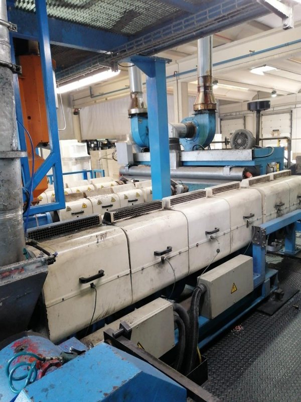 Cast film extrusion lines are commonly used to extrude plastic films especially for flexible packaging industry. / In a cast film extruder PE, PP or PA granulates (or other polymers) are melted inro an extruder and pushed through a flat extrusion die (T die), extruding a sheet of molten polymer onto a cooled roller (chill roll).