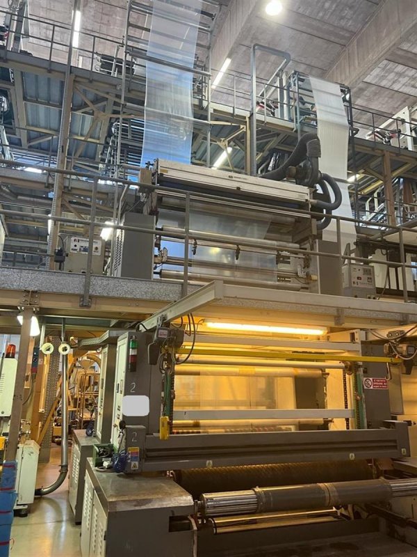 In a blown film extruder PE granulates (or other polymer) are melted in an extruder and pushed through a circular die extruding a tube of molten polymer. Tube is then inflated to multiples of its initial diameter and cooled to form a thin film. Bobble is later collapsed and re-winded.