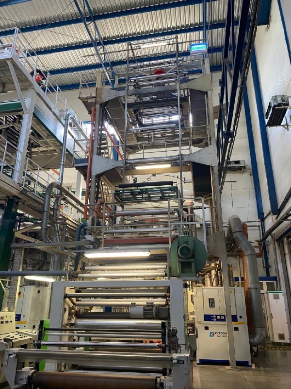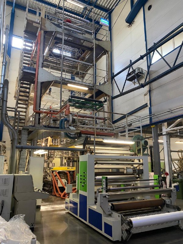 In a blown film extruder PE granulates (or other polymer) are melted in an extruder and pushed through a circular die extruding a tube of molten polymer. Tube is then inflated to multiples of its initial diameter and cooled to form a thin film. Bobble is later collapsed and re-winded.