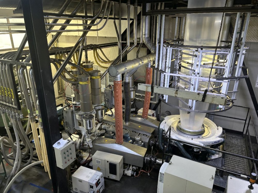 | Head description | IBC with auto control via 3 ultrasonic sensor for diam measurement. Air ring K Design KARAT with Vario-cool automatic thickness profile control |