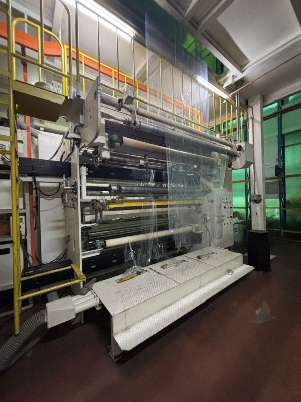 | Rewinder description | - Double turret winder with 2 turret winders an upper and a lower one - Make Fuji Sakai (Japan) - Special design for thin films - Automatic reels unloading and cores re- loading system - Edge trim removal |