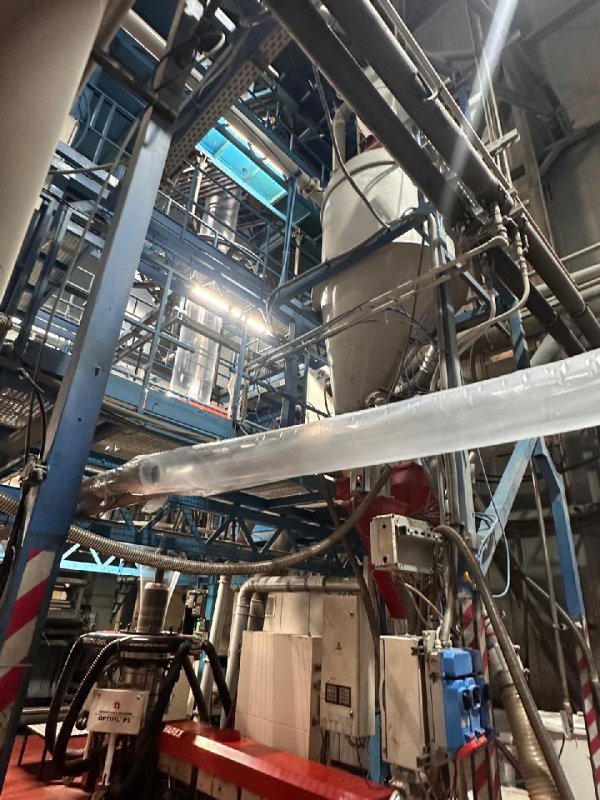 In a blown film extruder PE granulates (or other polymer) are melted in an extruder and pushed through a circular die extruding a tube of molten polymer. Tube is then inflated to multiples of its initial diameter and cooled to form a thin film. Bobble is later collapsed and re-winded.