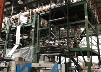 In a blown film extruder PE granulates (or other polymer) are melted in an extruder and pushed through a circular die extruding a tube of molten polymer. Tube is then inflated to multiples of its initial diameter and cooled to form a thin film. Bobble is later collapsed and re-winded.