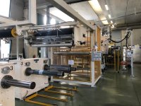 - In line slitting, pulling calander, 4 winding shafts, max reel diam 1000mmm