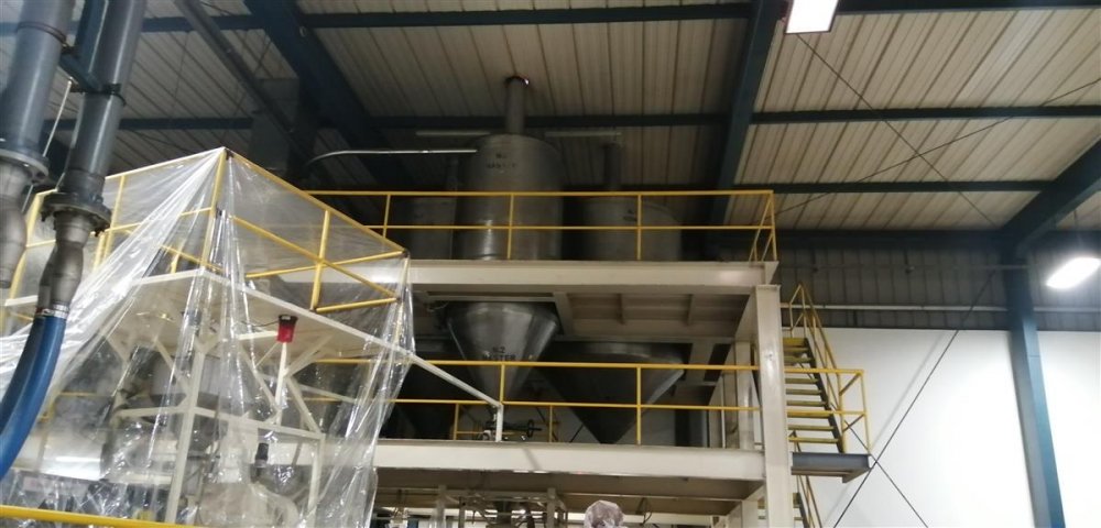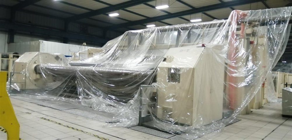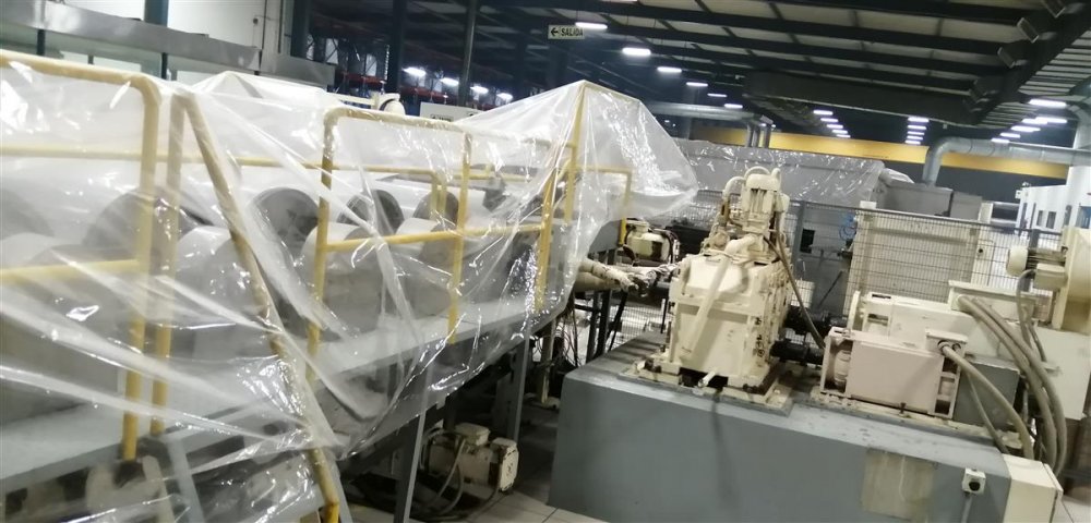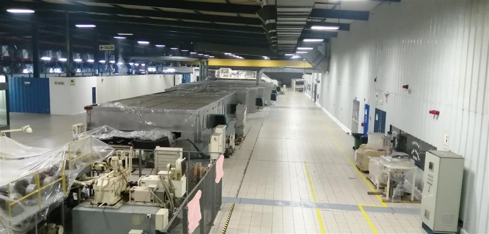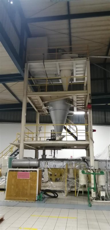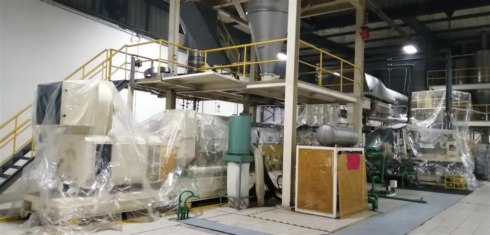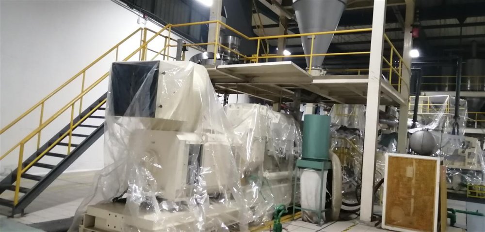 | Note | ATTENTION: PARTS OF MACHINE WERE REMOVED Max mechanical speed: 280 m/min Edge recycling system Pneumatic conveying system Cyclone to separate resin and conveying air Metal separator Mixing hopper Suction conveying for Co-Extruder Edge trim recycling Edge trim grinder Conveying fans Recycling System - Erema 500 kg/h RM 80T Utilities: - Compressor, Boiler, Silos, Mill Rolls, Mill Roll Stands (corona and nip), Nip rolls stands, Over Head Crane (10 TM). |
