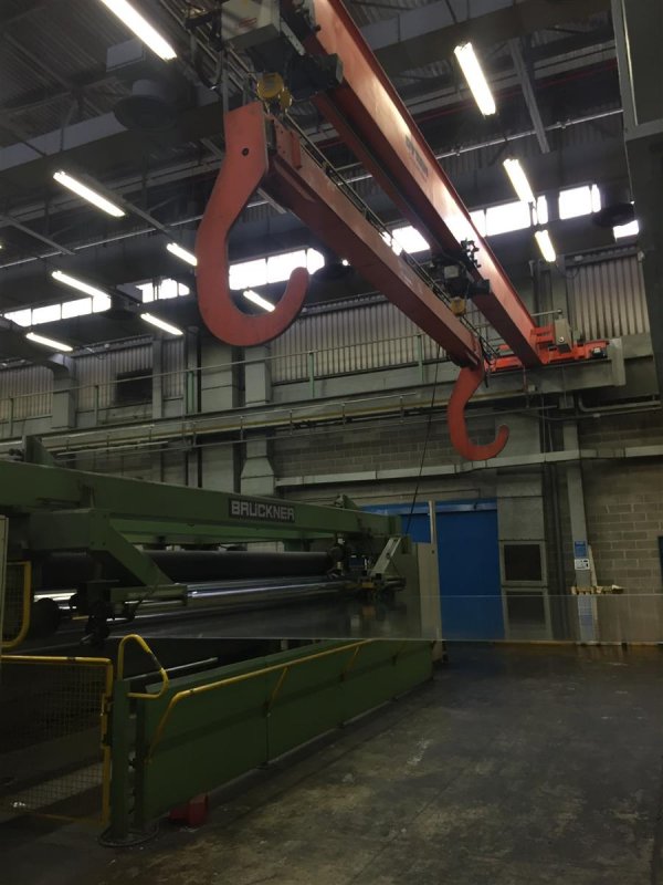 | Note | Max mechanical speed: 250 m/min / upgraded to 300 m/min; AC and PLC:-fully integrated system PLC with 3 operator workstations with trends and reports; Utilities:- Compressor, Boiler, Silos, Mill Rolls, Mill roll Stands (corona and nip), Nip Rolls stands, Over Head Crane (10TM). |