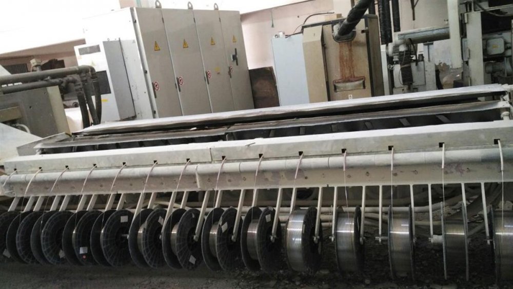 | Note | Output : 20 tons per day ( calculated for 12 mic Polyester Film in maximum width ). Min. metallization width 1200mm . Core ID 152mm . Diam of ALU wire 1.6mm. Unwinding tension range /tension capstan unit : 3.5 to 65 Kg / 90 Kg . Diameter of process roller : 500 mm . Additional Cooling System Corema Chilling unit for main process drum ( -20 C) . Max. Absorbed power (approx..) 340 KW . Number of chambers: 3 independent vacuum chambers with independent pumping systems to increase the efficiency of the vacuum. Optical control RF: Controls during metallization process the thickness of aluminium coating through photometric non---contact sensors. The system also controls automatically (via step motor) the deposit of aluminium and the feeding of the wire. Rewinding Unit: Digitally control to ensure an accurate rewinding tension control, via the following five DC motors: Unwinding,Rewinding, process roller (main drive), 2 capstan rollers. Two ceramic plated rollers, 2 bowed spreader rollers, oscillating arm on the rewinder with tension sensing control system. Handling of the rolls: The machine includes a hydraulically driven robotic handling system, manufactured by ICAP Group, for the loading of the jumbo roll, and unloading of the finished rolls. This same system also inserts and extracts the air expanding shafts during the loading and unloading procedure .3 air Shafts are included in the supply . Special Robotic System for Loading & Unloading of rolls. |