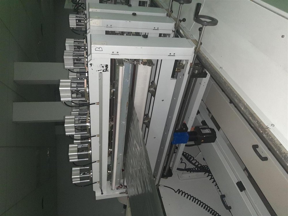 | Note | Installed power 50 Kw, 400V 50Hz 12 m x 1.5 m x 2.3 m (L x W x H) 4 Euro hole, 4 tear notch, 5 round corner punches Dancer at unwinding + 2 edge ultrasonic guides Folding unit 3 longitudinal sealing bars 600mm+600mm cooling 4 cross sealing bars 2 cross cooling bars 1 trim winder Cross cutting by sevodriven Guillotine on rails Nr. 1 Industrial-PC with VGA graphic monitor and touch screen 12" (800 x 600 pixel) |