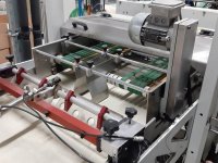 | Note | Machine is servo driven, with several independent servo drives for max flexibility and to optimize change over time - Longitudinal zipper sealing, 2 lanes - 2 xLongitudinal sealing (800+100mm) and cooling (400+100mm)¨ - 2x cross sealing sections 680mm - handle hole punching - V and U corners punching - Register photocell - MD trimming - Cross cutting section, flying knife (1 or 2 lanes) |