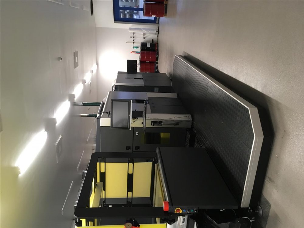 | Note | - Few Hundred hours of operation - web width: 400-762 mm - ITM cycle: 0,5217 sec - Process linear speed: 2,38 m/s - Max web speed: 42 m/min - Min web speed: 27 m/min - Motion profile: 3-9 (separations) - Max Image size: 1100x740 mm - Repeat length: 550-1140 mm - Image resolution: 812 and 1219 dpi at 8 bit / add. 2438 x 2438 dpi HDI - Line screens 180 - web tension: 50-320 N - Substarte thickness: 10-250 my - Materials to be printed: Film (PE,PET,BOPP,CPP,PA,PVC,OPS) Paper, Aluminium and biodegradable materials Machine dimensions: 9,7mx4,7mx H2,4m |