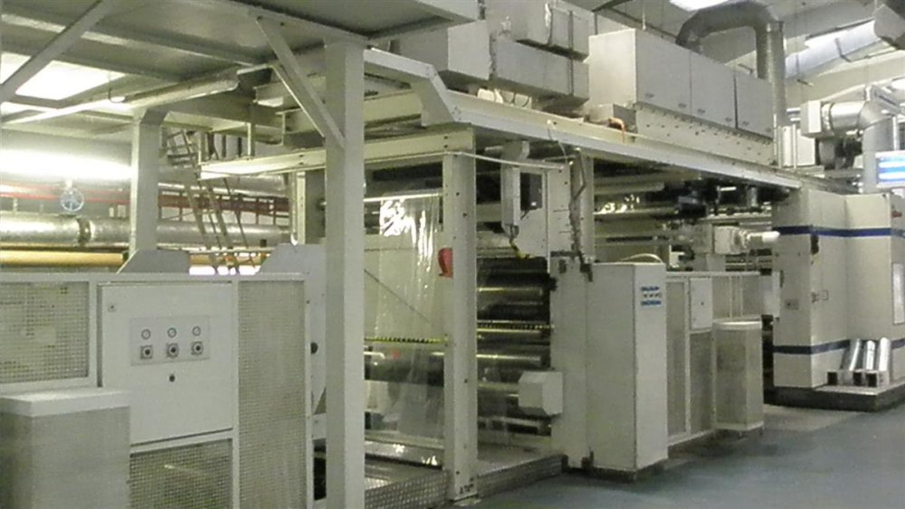 | Note | CI drum diameter: 1910mm Chrome nickel plated Mandrel diameter: 89.243mm Plate thickness: 1.7mm Winding system: flying splice Reel loading table at unwind In line slitting by razor blade centre slit only Web tension range: maximum 250N, minimum 10N Mechanical speed: 400m/min Materials: PE LDPE/HDPE, PP OPP/BOPP PET, PA approximately 10-120 microns Spreader roller before CI drum Auto fresh solvent intake and used solvent emptying Drying tunnel length: 5m Operator control OCS Carbon fibre mandrels x 3 sets |