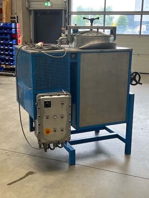 | Note | * condition of the machine : very well * indirect heating by diathermic oil * Antifoam group/system for solvent vapour canalisation * frontal discharge valve manually operated * vacuum active during all the distillation cycle * temperature control by thermoregulators * heating power 9.6 kW * cycle time depending on liquid 4.5 - 8 hours * maintenance done regular * capacity on daily basis ( ethanol mix with other alcohol types ) 200- 600L / day |