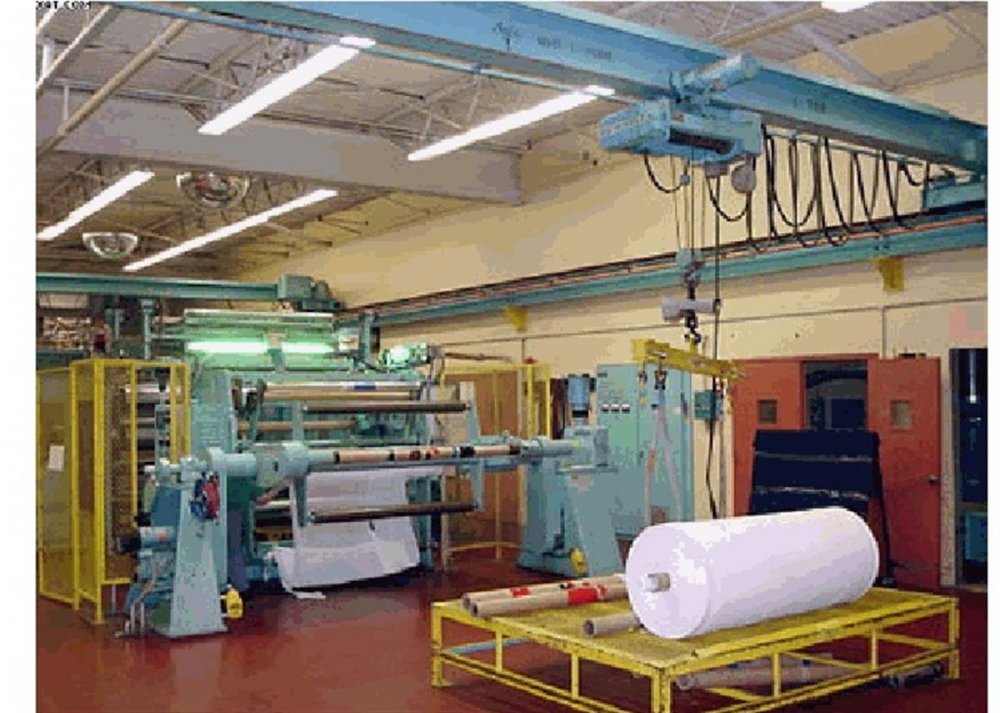 | Note | K-Tron vertech gravimetric feed resin system (4+2 blenders) 2 Beringer hydraulic screen changers (model SL-35, model SL-25) 2 polymer melt pumps with DC drives Egan 3-layer feed block Egan 2032mm 3-roll casting station (406mm diameter x 2032mm rolls) 2 roll Kuster calenders Ohmart beta gauge 2133mm Eriez EZ5 Metal Detector (new in 2003) 36kw Sterlco hot oil unit 75kw HTT hot oil unit Systronics ision system (2 cameras) |