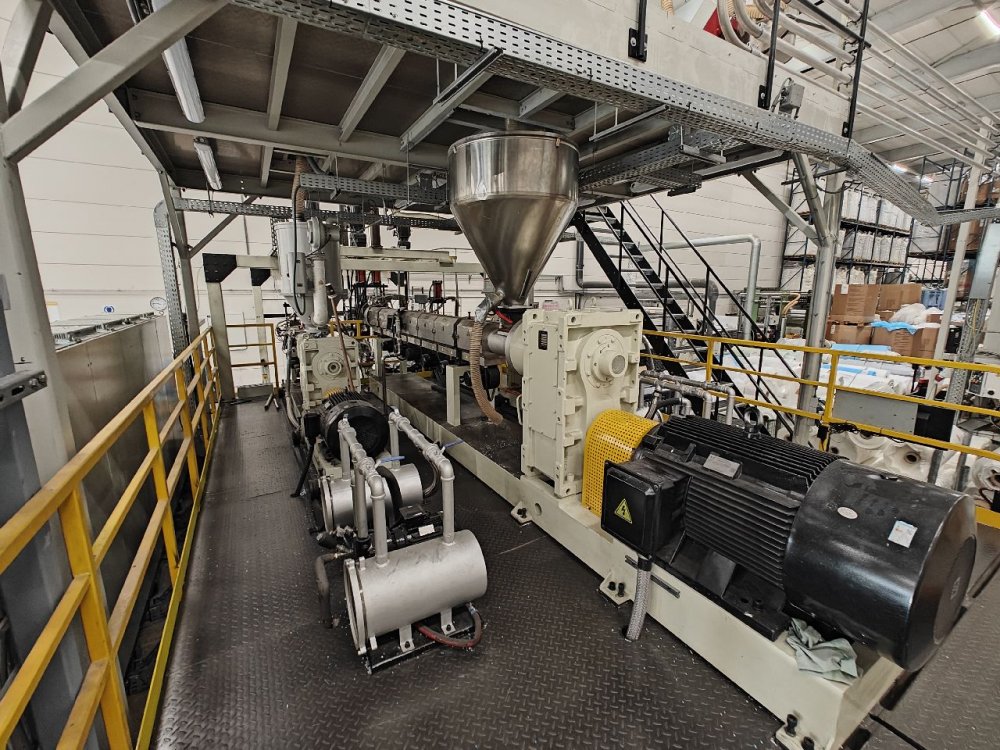 - Including : - Coating line TRESU => in-line - Sheeter - Automatic stapler - Corona treater - UV curing - Gravitex systems Produced PP , LDPE , HDPE , PS mainly for plant pins PP 350 - 600 micron ( produced ) but it can be up to 1050 micron Die types: hanger type mold Mould width: 900mm Product thickness: 0.3-1.5mm Net width of sheet (after be trimmed edge) Width 750mm