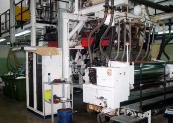 - Edge slit, grinding and refeed in extruder B throu additional. Edge trim and recycling system , pneumatic transport system between all components. Buffering silos.