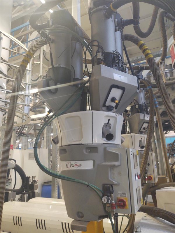 - L/D30; Screw rpm: 0-170; AC motor 86KW, 4 heating zones, leverage screen changer, Gravimetric mixer 4 componentsDOTECO type Adroit with resin vacuum loaders