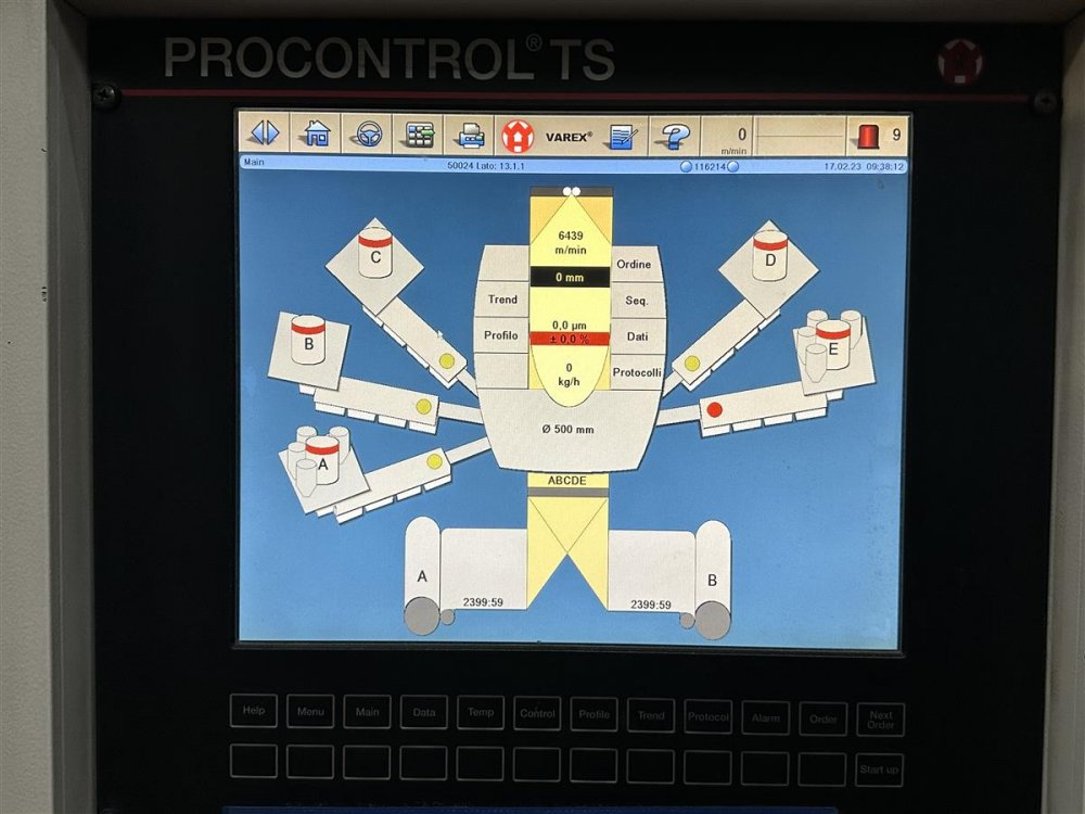 | Thickness controll system | YES , 2 thickness gauges a. gauge beta control b. Electronic system model HISCAN, year 2009 for measuring thickness of overall film and of EVOH layer. Automatic thickness control OPTIFIL P" |