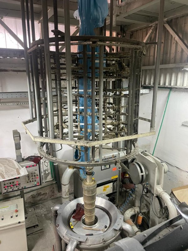| Description 1 | Extruder Alpine model UNEX 61/90/AI 3 comp. gravimetric dosing units brand Contrex mod. DE 3000 complete with suction-granule pumps. Cartridge type screen changer. |