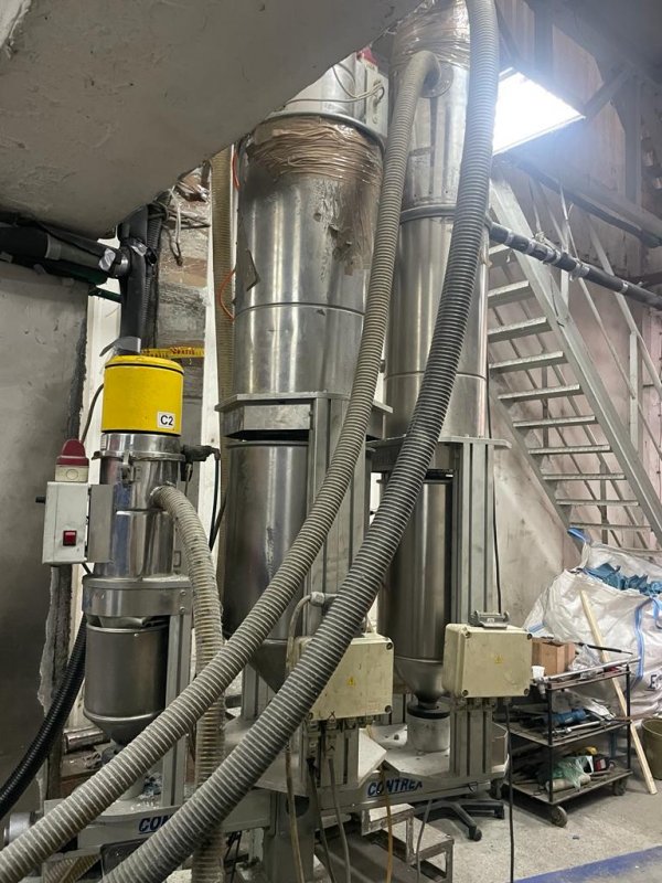 - Extruder Alpine model UNEX 61/90/AI 3 comp. gravimetric dosing units brand Contrex mod. DE 3000 complete with suction-granule pumps. Cartridge type screen changer.