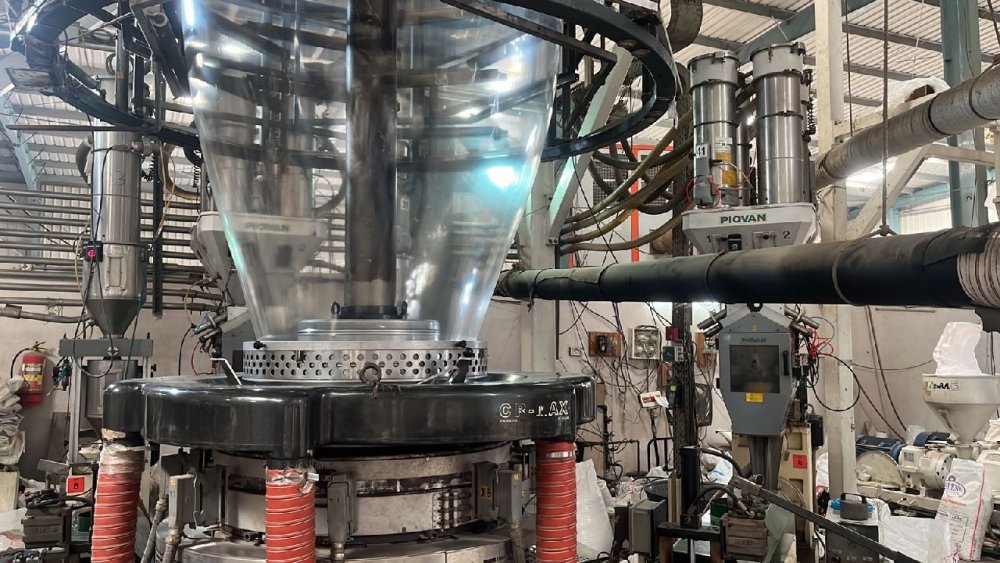 - 450 mm 5-layer Die-head, 10-zones heating, 550 x 2 mm insert for LLDPE IBC with 1 nos. air chiller bubble control, auto inner bubble exchange by high speed stepper motored Valve Air ring with 64 heating inserts, Brand - Kunding