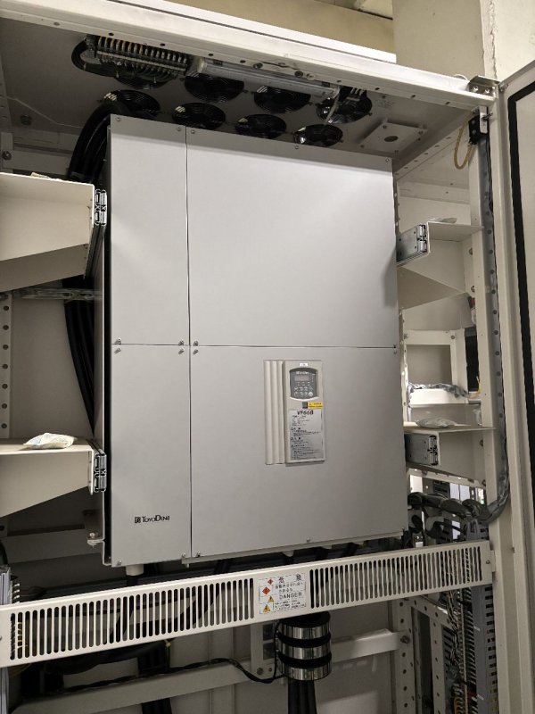 | Pull roll unit | - make Toshiba - drive motors 15kw and 11kw AC - working width before trim 5900mm, 5700mm after trim - rolls face width 6000mm - electrostatic discharge - Web cleaner on top side - Clean both: Olefin - Trimming via razor blades |