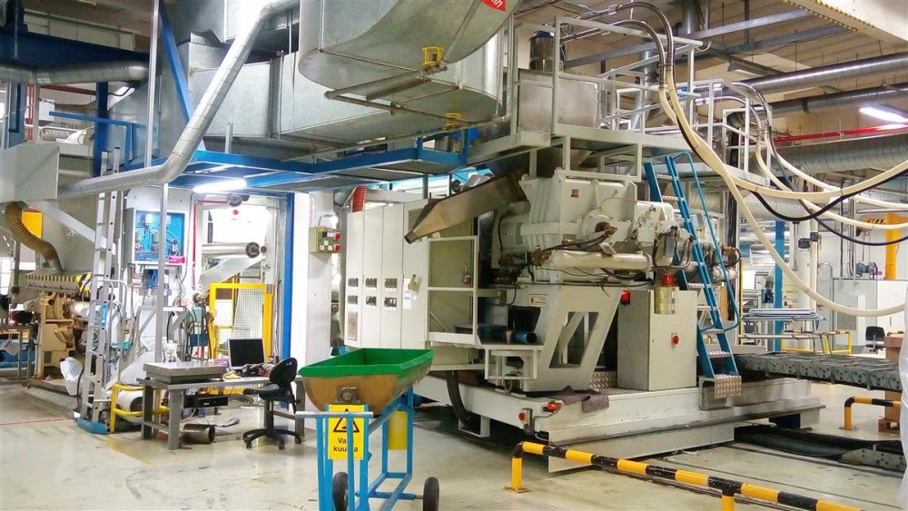 | Note | UPGRADES AND OVERHAULS: -Winder new in year 2015 - Controls upgraded year 2008, currently machine is PLC SIEMENS S7, dirves renovated with ABB inverters, Siemens Sinamics inverters and Eurotherm digital DC drives, Siemens HMI -Mechaical overhauls -Cloren automati extrusion die year 2014 (recently cleaned) -Spare cloren die year 2008 -Thickness control Themorficher year 2014 with 2 readng heads -Dosing and material feeding system year 2006 FILM THICKNESS CONTROLL SYSTEM: - Make Thermofischer - Year 2014 - Double gauge (o 1 frame) Beta ray system and infra red. SPARE PARTS: Extensive ste of spares. Among which including also: - Automatic extrusion head Cloren with internal deckling - 3 x chill rollers (2 with mat finish, 1 with gloss finish) All with new finish - 4 new nip rollers for second ECL unit - banana roller - cooling roller - Other 4 new + 3 used rollers - 1x vetafone unit - pneumatic pipe’s roller for first ECL unit - contact woller (for winder) - set of new gears to change rpm ratios on extruder’s gearbox - 4x rotary joints - several new and used heaters for extruders - 2 new double fans for extruder’s cooling - sets of roller bearings (for calander) - second extrusion die’s feedblock cassettes for structures: ABA, AAB, BAA, AAA, BBB - several melt temperature and preassure gauges - several spares for die, including several spare thermo cylinders - new motors - 2 new Siemens Simoreg DC drives - Spares for carrige, e.g.: wheels, chain for pipes - Several new and used pnaumetic pistons used in different parts og the line (including ECL units and winders - several rollers |