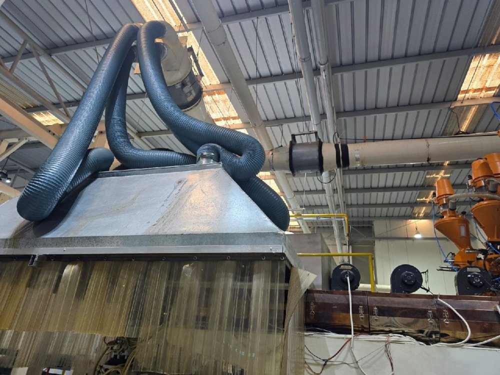 - Co- extrusion unit: A Extruder capacity 200 kg/h, screw ZB, G 90mm, L/D 35/1, heating zones - 6, mesh diameter 100mm, max. extrusion amount 260kg/h B Extrude capacity 70 kg/h, screw ZB, L/D 33/1, heating zones- 5, mesh diameter 80mm,max. extrusion amount 150kg/h feeding capacity: 400 kg/h Air gap height 80-150mm Die head: 3 layers distributor A/A/B; B/A/A; B/A/B; A/A/A Make : Sumitomo max. T-die Lip width - 1450mm Mould lip gap - 0.4-1.2mm Block type - Inside blocking Heating way - electricity Heating zones -11 Internal deckling system for width reduction. Final net coating width 600-1300mm 3 rollers lamination Chill roller diameter 700mm, chill roller length 1400mm,chiller roller mirror surface type, surface roughness RZ 0.5 Silicon rubber roller diameter - 255mm, Silicon rubber roller length 1400mm Supporting roller diameter 240mm, supporting roller length 140mm Peel Roller diameter 150mm, Peel roller length 1400mm, Siemens drive motor, warm reducer