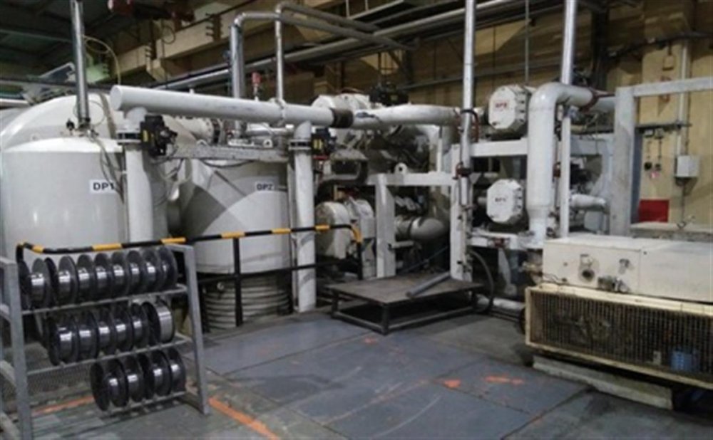 - Evaporation/ coating area 2 diffusion pumps:50.000 l/h 1 mecanic booster pump (roots pump):9.000 m3/h 1 rotary piston pump (mekanik pompa) :505 m3/ Winding area: 3 x Root pump):2* 13,000 m3/h, 1*9.000m3/h 1 x Mechanic pump:505 m3/ ha