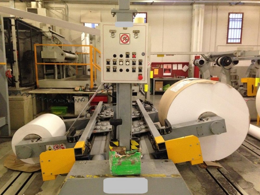 | Note | Sheet width 350 -1500mm. Sheet lengths: from 350 to 1650mm. Transversal blade load :700 g/m2 Rotary knives: 3 Format precision: +/- 0,5mm ( +/- 0,05% ) -measured on the sheets coming in sequence from the same roll Angle accuracy: 0,5mm measured on a1000mm sheet length Height of the pile including the pallet: 400mm- 1500mm. Reel diam. 500 -1500mm. Reel width : 400-1500mm Core diam. From 76 - 300mm. Reel weight max 2 tons. With pneumatic air cooled brakes. Register control through photocell for pre printed reels Very good conditions It can be seen in production! |