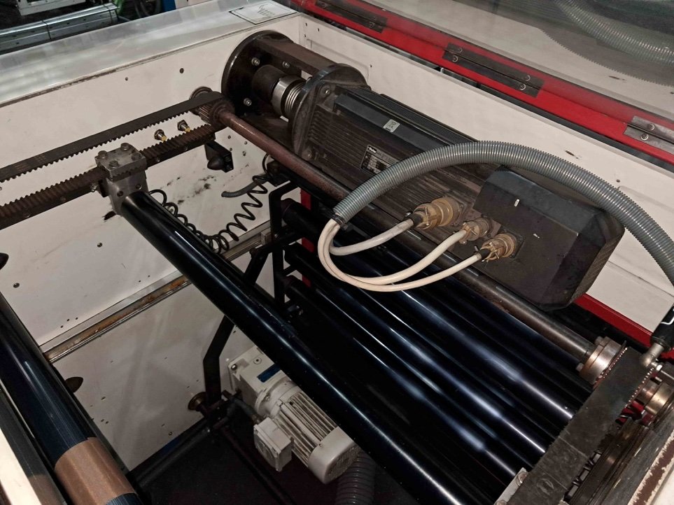 | Unwinder | Shaftless, Electric powered and braked, VFAC surface driven, Unwind speed determined by position of compensator, Film tension can be adjusted between 0 and 1 Newton/Meter/Micron, Selection of the unwind direction via touch screen, Pneumatic reel lifting, Folding triangle on top 2, Motorised opening and closing of lifting arms, With ultrasonic BST centre guide, Light running bearings, End of reel and film break detection, For core dia of 76 and 152 mm max. roll diamterer 1000mm |