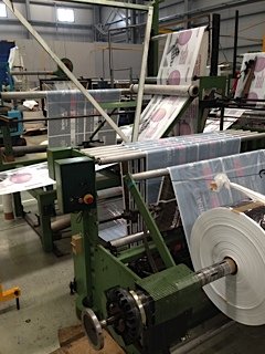 - Machine for production of side weld patch handle and carrier bags with internal glued reinforcement. Made of suitable polyethylene film LDPE, and HDPE, and blends . Sealing and cutting width max 850mm; draw lenght: max600mm; Line speed max 60m/min ; Individual draw rollers and single lane print repeat control; ARV 850 automatic control system for fine adjustment during machine operation; STW 850 side seal sealing unit for lDPE ; LLDPE, HDPE; ST850/TRL wicket stacker for collecting and stacking of bags; KSM-OM1350 central film guiding unit with optical sensing system and electromotive adjusting system;FD 1350 folding station with folding triangle to fold the flat film into a semi-tube;Frame for folding triangle on unwinder; DKT 850/left- additional equipment for the production of carrier bags with internally glued reinforcement patch (starting from single-wound sheet). Machine frame in steel-angle iron construction. C-shape punching unit Kaiser shape; Unwinder for patch film up to 280mm total width. execution with new hotmelt glue system.