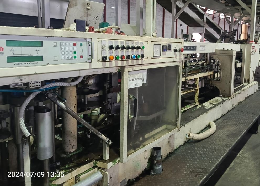 - W&H sack line composed of: W&H Tuber AM2145: Tube Width: 35 cm - 60 cm Cut-off length - Stepped End: 50 cm - 93 cm Reel width: 103 cm Reel diameter: 130 cm Speed: 200 tubes/min No. of plies: 4 Remote Access: No Tear-off unit: Rubber rollers Pre-printed reels option: Yes W&H Bottomer AD2377 year : Sack Width: 40 cm - 55 cm Sack Length Stepped end: 43.5 cm - 78.5 cm Sack Length Flush Cut: 43.5 cm - 78.5 cm Bottom Width - Stepped End: 8.5 - 12 cm Bottom Width - Flush Cut: 8.5 cm - 12 cm Tube Length: 55 cm - 93 cm Valve - Cut-off Length: 14 cm - 19 cm Valve Ply: 1 ply OPTION : A W&H Flexa 820 / 4 colors printer, year of construction 2016, Price 0.8 Mio